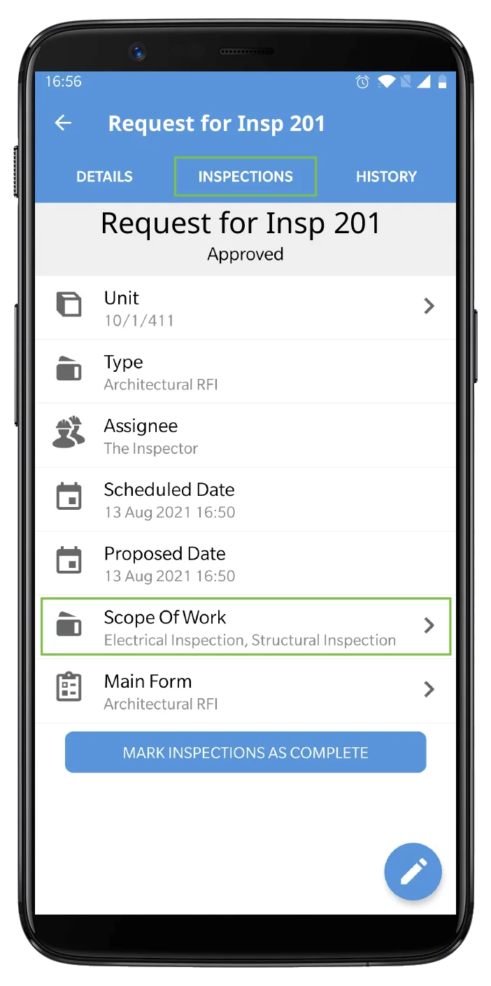 • Create ready-to-use inspection forms automatically once the Request is approved