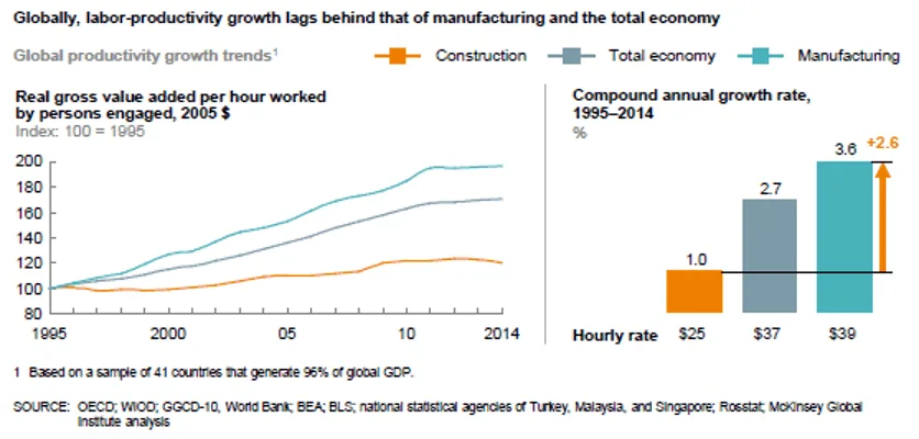 McKinsey & Company believes the construction sector can catch up. Roughly 30% improvement can be achieved by improving constructability through better design and engineering solutions. The balance rests in the hands of construction companies themselves.